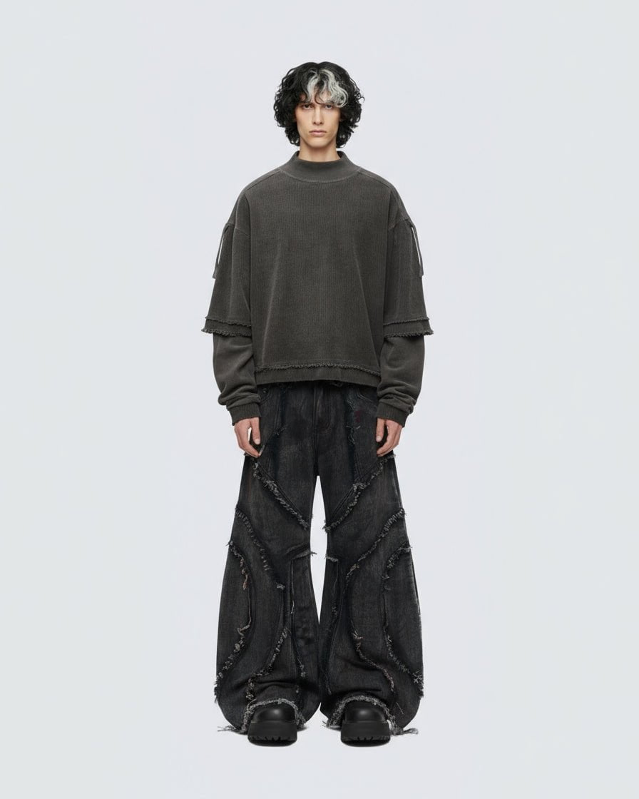 The Patchwork Distressed Sweatshirt blends premium comfort with a bold, handcrafted aesthetic. Designed with textured paneling and subtle distress detailing, each piece carries its own character — no two are exactly alike.